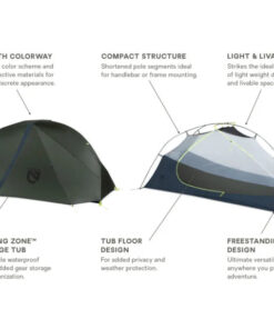 The Dragonfly Bikepack tent has a unique suite of features that make it the essential backpacking shelter. It starts with the carry bag, an extremely durable diamond ripstop roll-top stuff sack featuring reinforcements and tie-down straps perfect for fastening to your bike. The poles are made of shortened segments that keep the packed size small, and the stuff sack securely attaches to your handlebars, under the seat, to any rack, or inside the frame, giving you lots of options and flexibility.
