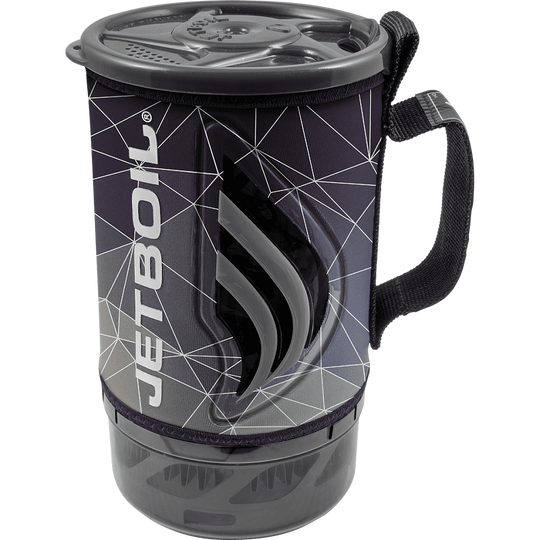 Blistering boil times come standard on the Flash personal cooking system, the ultimate camping stove for preparing coffee, soup, or dehydrated meals on the trail. Optimized for efficiency, the Flash boils water in a lightning-quick 100 seconds, making it the fastest Jetboil ever. Jetboil’s 1-liter FluxRing cooking cup with insulating cozy makes boiling water—and keeping it warm—a breeze. Start heating instantly with the convenient, reliable pushbutton igniter, and verify that the water’s ready with the thermochromatic color-change heat indicator. Compatible Jetboil accessories, such as a coffee press, hanging kit, pot support, skillet, FluxRing cooking pot, and utensils make this a necessity for your next backpacking adventure. Includes fuel canister stabilizer; bottom cup doubles as a measuring cup and a bowl; easy to pack and carry at only 13.1 ounces.