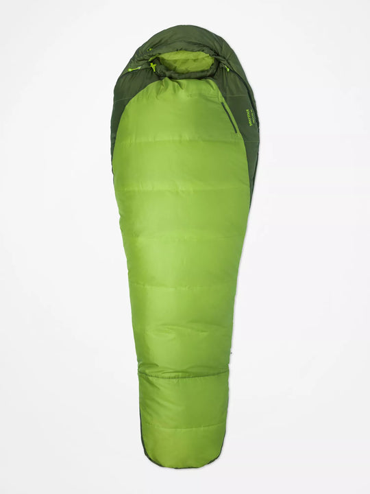Bring the multipurpose Trestles 30° Sleeping Bag along on your next overnight adventure instead of postponing it because of the chance of rain. It is designed to perform well in cool and damp environments while you are backpacking, trekking, mountaineering, and more. Even when it rains, SpiraFilTM high-loft insulation will keep you warm. Zip up the full-length two-way zipper and rest your feet in the spacious 3D foot box after a long day of exploring. Its top and bottom are made of blanket and wave construction, offering an unbeatable combination of maximum loft, warmth, and comfort. Use the fold-down secondary zipper to let some air in if the interior becomes oppressively warm. Small items can be tucked away in the stash pocket for convenience.